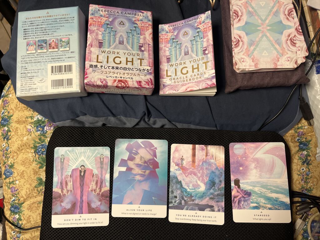 | ワークヨアライトオラクルカード に聴きました 人に合わせて光を小さくしないでください 人生に調和をもたらす あなたは正しい道を進んでいます スターシード の四枚でした ![]() |