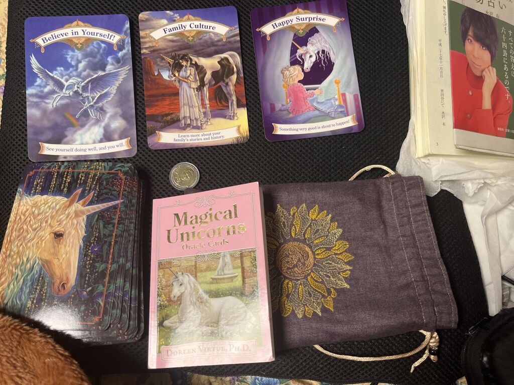 12/4 今朝のカードリーディングユニコーン🦄からのメッセージは 自分を信頼しましょう 家族の文化 嬉しい驚き の三枚です。