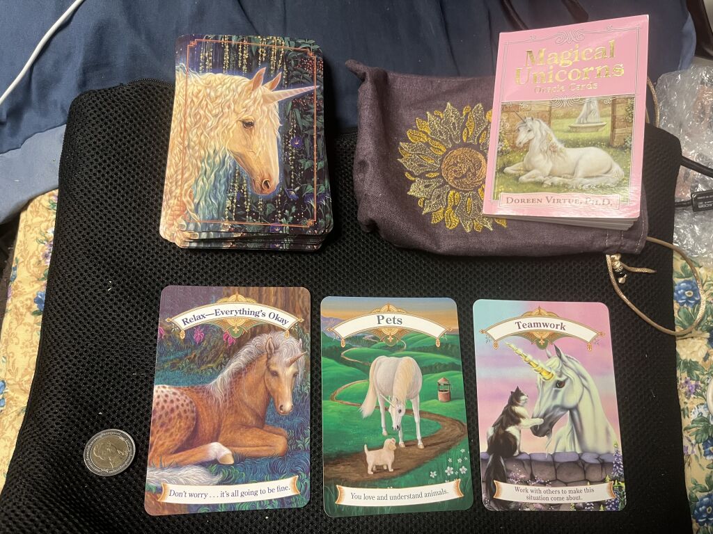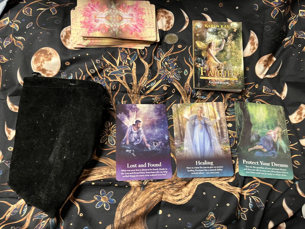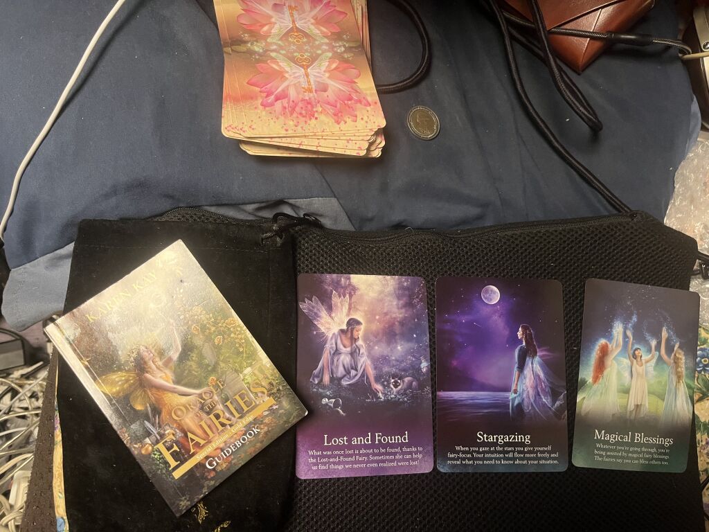 (2)妖精🧚からのメッセージは なくしたものを見つける 星を見つめる 魔法に満ちた恵み の三枚です。なくしものの妖精のおかげでなくしたものがもうすぐ見つかります。星を見つめるとき直感が自由に駆けめぐり知るべきことが明らかになるでしょう。妖精たちはあなたがほかの人たちにとっての恵みになれることも告げています。![]() |