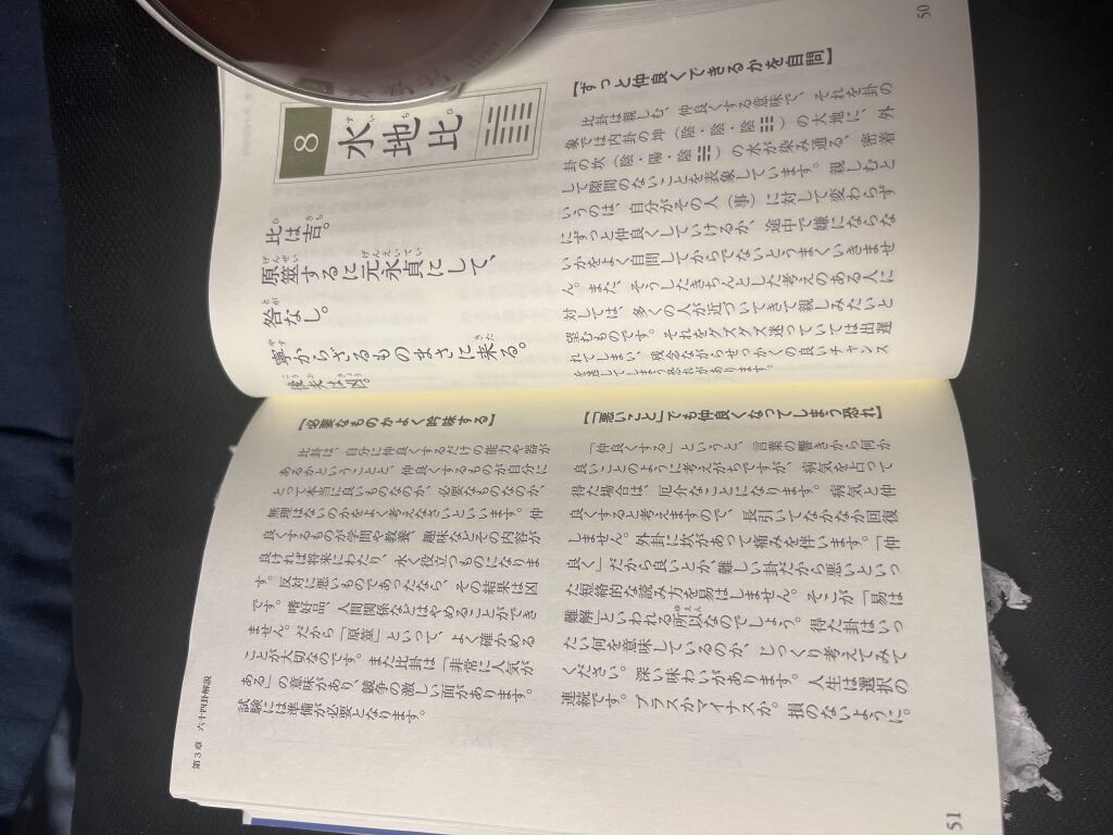 おはよう新しい地球〜新しいわたしたち〜。易は8水地比の二爻(スイチヒのニコウ)です。親しむ の意味の八卦(ハッケ)です。ずっと仲良く出来るかを自問し、必要なものかより吟味し、自分の見識で事を選択して答えを出します。自分を大切に出来る人は良い結果を得ます。![]() |