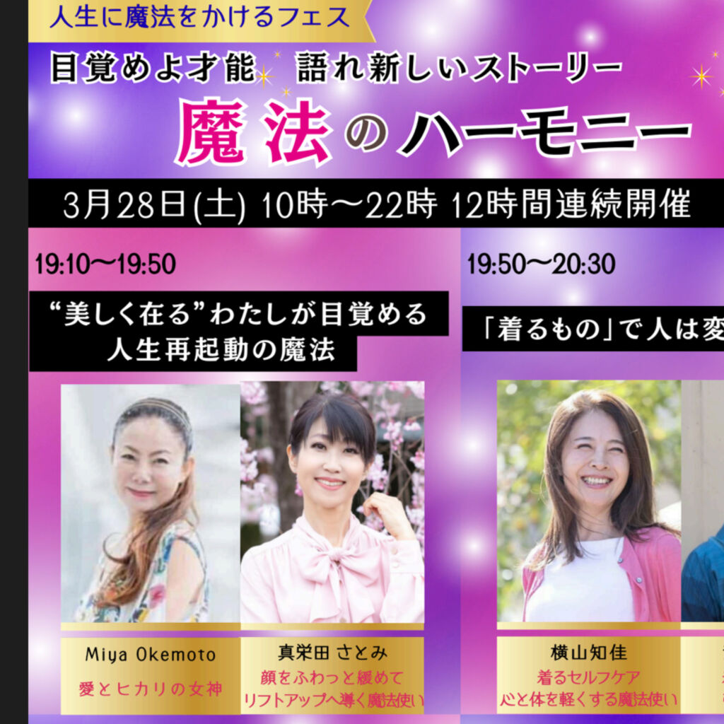 | おはよう新しい地球おはよう新しいわたしたち。 人生に魔法をかけるフェス19:25-20:05 目覚めよ才能 語れ新しいストーリー 2026/3/28 “美しく在る”わたしが目覚める 人生再起動の魔法 Miya Okamoto愛とヒカリの女神 真栄田さとみ 顔をふわっと緩めて リフトアップへ導く魔法使い 一日目無料41分動画収録しました。 インスタURLは、 https://instagram.com/p/DWbUsgmD0XD/?utm_source=qr インスタバイオ(リットリンク)は http://instabio.cc/4050104IIOL2X 今日は近くのキャンプ場でさくらまつりでウクレレ弾き語りします。 ![]() |