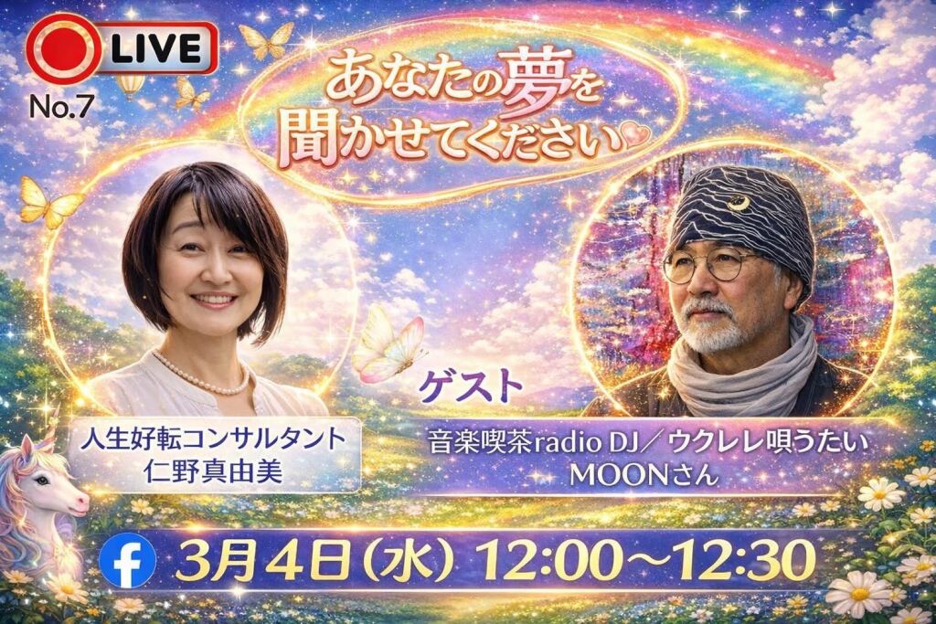 | あなたの夢を聞かせてください by 神野真由美さん vol.7 MOON☾ 音楽喫茶DJ ウクレレ弾き語りSinger at 熊野 2026/3/4inntaview50min 音連れる響きに浸って 自分の音楽的人生を 生きてる? インスタ50分ヴァージョン https://instagram.com/p/DVjBR0SD0dR/?utm_source=qr ![]() |