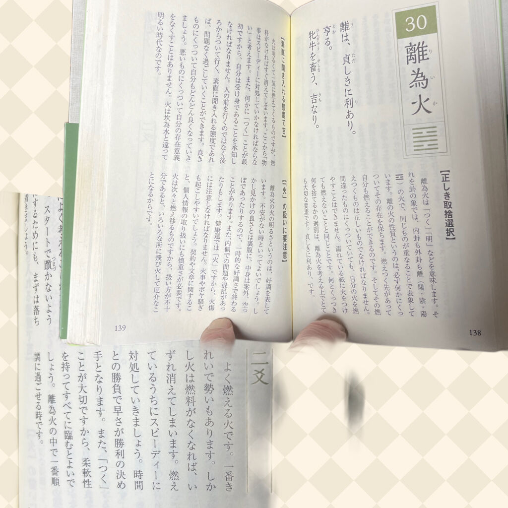 おはよう新しい地球おはよう新しいわたしたち、今日の八卦は、離為火の二爻(リイカのニコウ)。正しき取捨選択素直に聞き入れる態度で吉。よく燃える火です。一番きれいで勢いもあります。時間との勝負で早さが勝利の決め手となります。一番順調に過ごせる時です。![]() |
