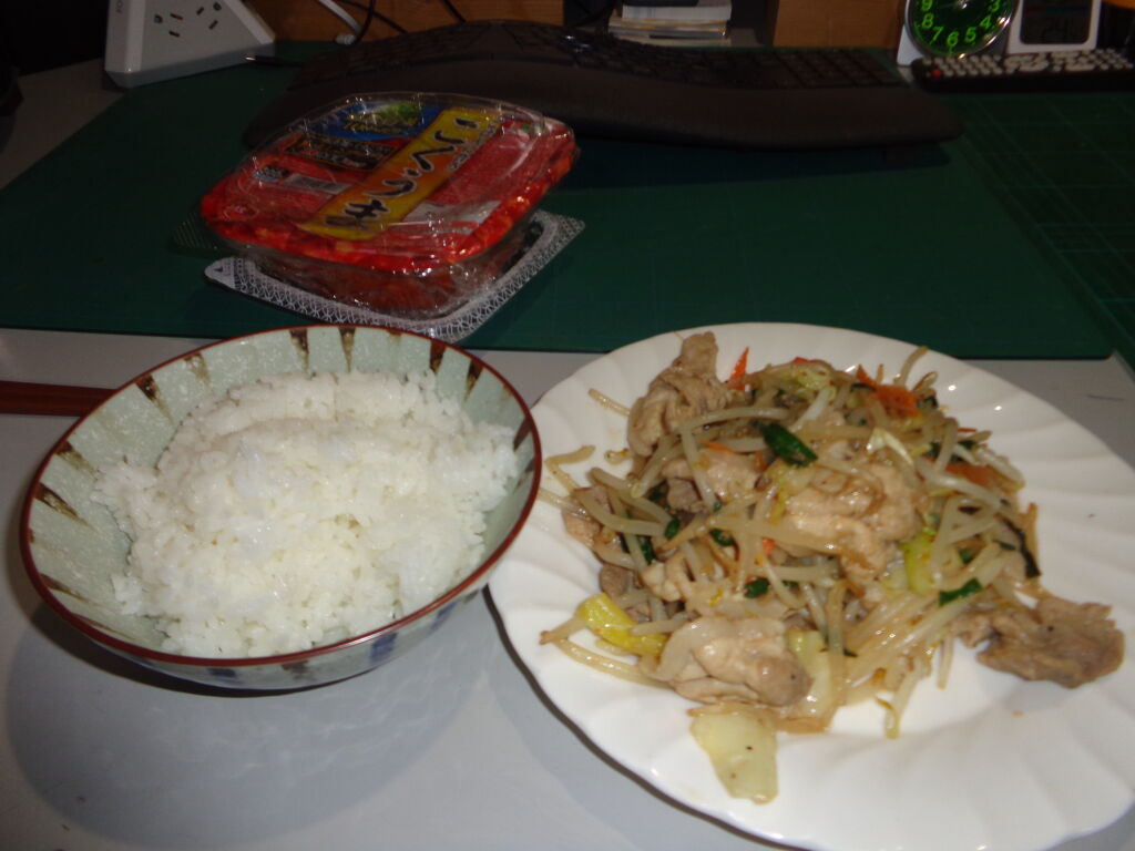鶏肉はケチャップ炒めにして野菜は塩こしょうにニンニクで。
