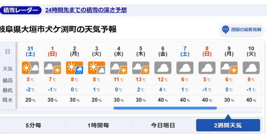 昨夜から大垣でも「雪」の予報が出ていましたが幸いにも