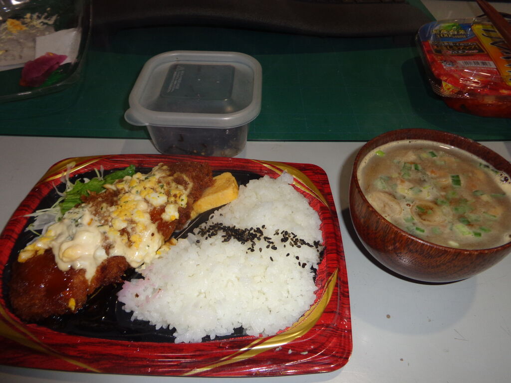 昼夜兼用の食事は「のり弁+肉豆腐+筍の煮物」等々。
