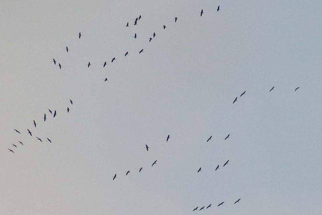 2組通過、合計100羽くらいで、最初の組は綺麗なV字編隊で、次の組は上昇気流を探し輪を描きながら南へ飛び去りさした。