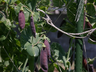 さやえんどうかな?美味しそうですね。久し振りにグリーンピースご飯食べたくなりました。