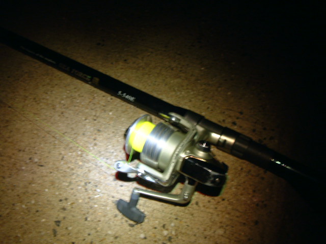 写真の竿のは釣れませんでしたけど、ジィ〜ジィ〜とドラグを鳴らしスプール一杯に巻いてた道糸が全部出るほど沖まで引いていく大物?が大島には居ました。 う〜ん残念!