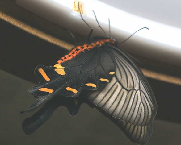 写真のように鮮やかな「ジャコウアゲハ」に変身していました。