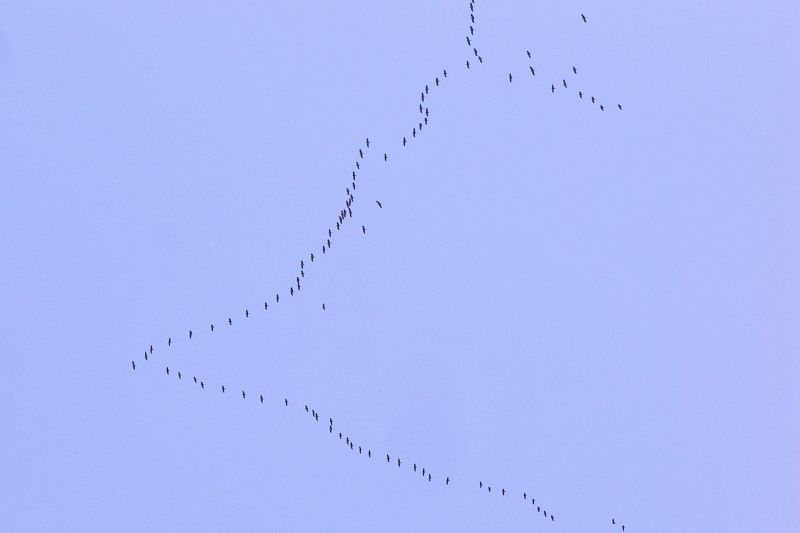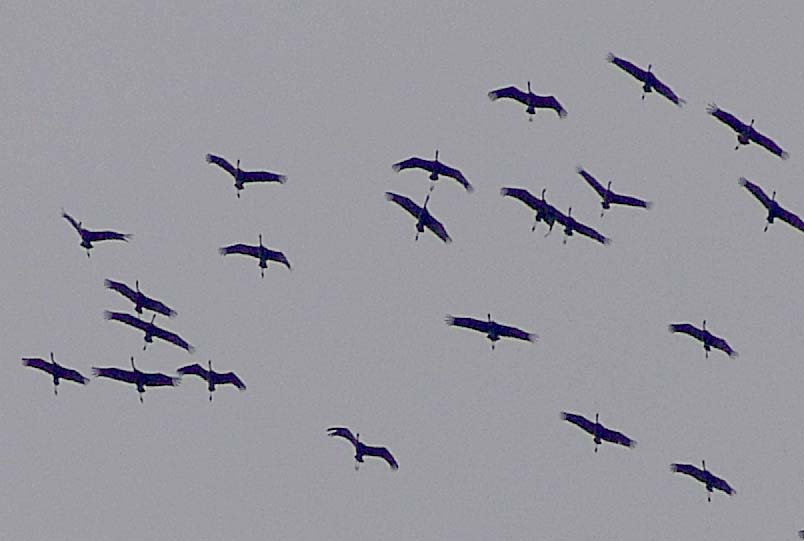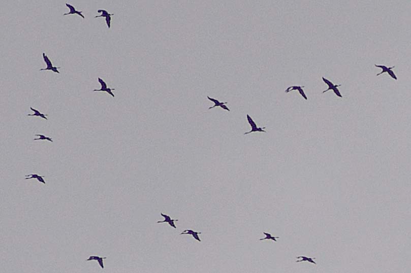 きょうは風もなく穏やかでしたね、出水のナベズルが沢山飛んだと言う連絡が入り、きょうは風が無い為陸地を通ると信じてましたら、その通りバッチリで佐世保市上空を1200羽(3組)が通過して松浦方面へ早い速度で飛び去りました、時間は12時〜13時40分頃。