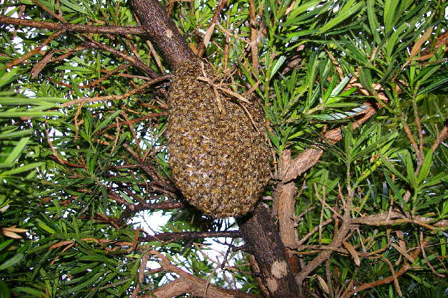 近所で2ヶ所に分蜂したとのことで、早速行って収容してしてきました。