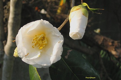真っ白な椿は珍しいですね。山茶花は白が多いようですが・・・
