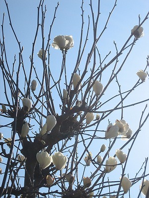 樹齢一千年の白モクレン、早くも開花していました。