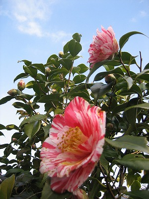 「しましま椿」ですか・・・椿は蕾が沢山ついているから一ヶ月間ほど楽しめますね。