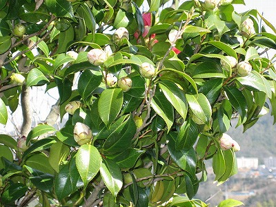 これは八重の椿でしょうか?私のも同じように蕾を沢山つけています。