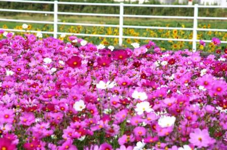 コスモス、密度が凄いですね。奥のひまわりも満開ではないですか