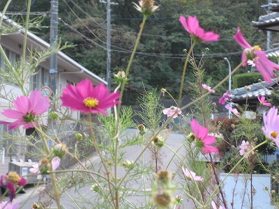 近くの身体障害者の作業所に残り物のコスモスが咲いていました。これで、今年は終わりでしょうか。