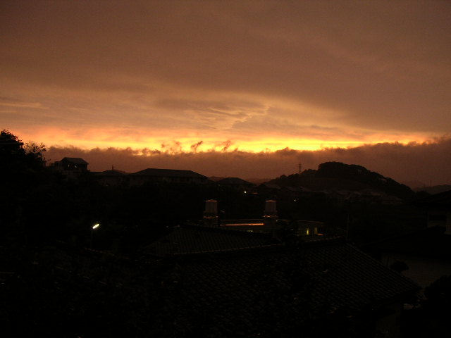 珍しいというか、ほんとに不気味な夕焼けですね。
