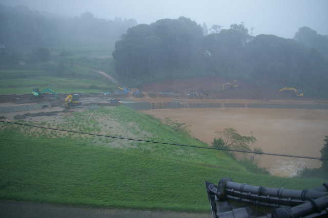 写真は17時頃の丸米池ですが、これから雨が更に強く降り中央の田圃が見えなくなる程でした。