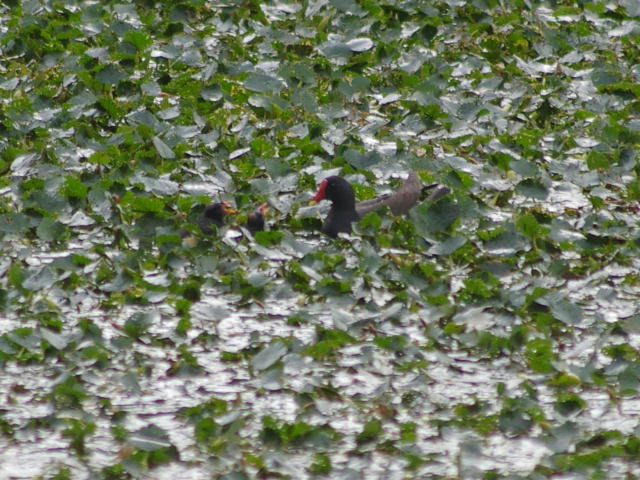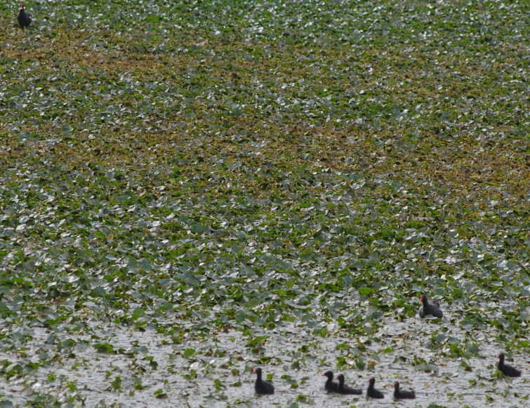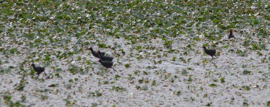 ヒシの上を走り回ったり、泳いだり元気にしています。