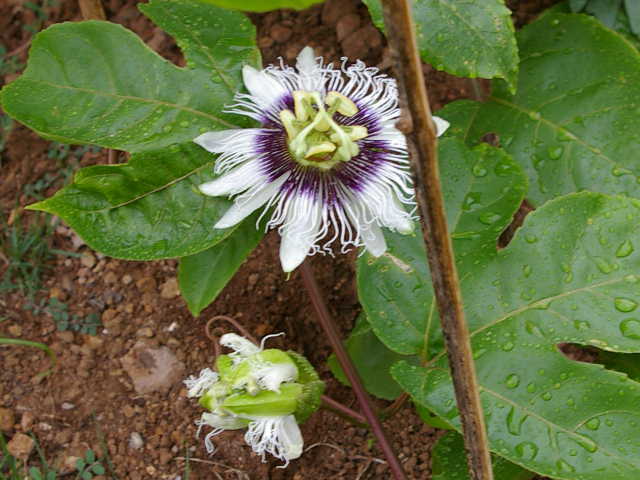 鹿児島から取り寄せた、新種のパッションフルーツが早くも花を付けました。