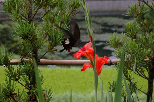 今朝、庭で撮ったアゲハですが、ピントを合わせる時間がなかったです。