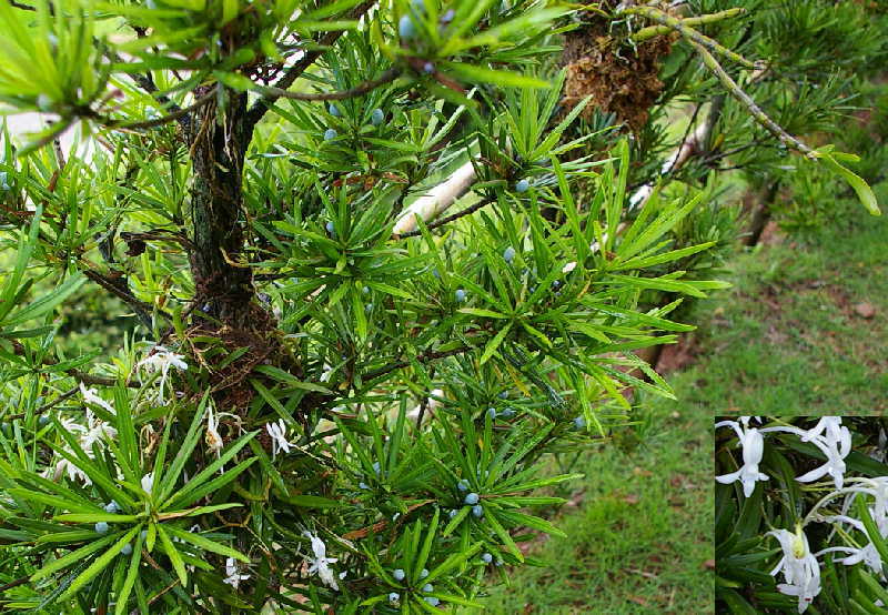 ラカン槇の縛りなおした蘭の一種、今年も真っ白く可憐な花を咲かせてくれました。