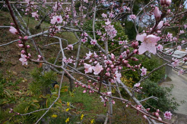 桃の花が満開に近くなりましたが、今年は遅いようです。