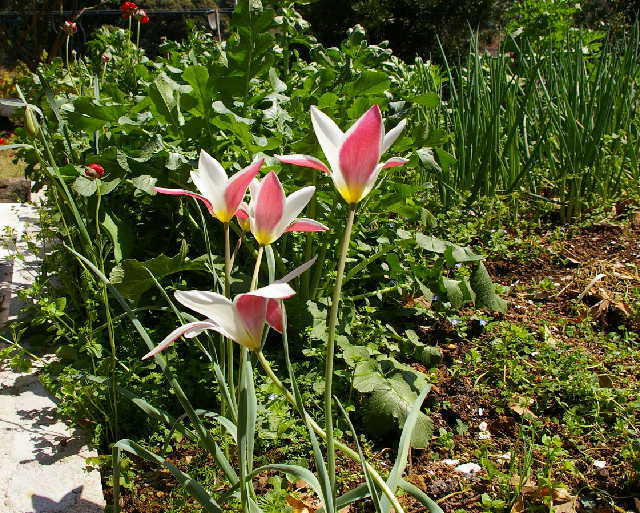 チューリップの原種が咲きました。葉っぱは、かなり細かったようです。
