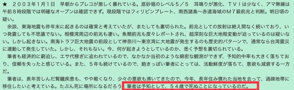 2025年12月30日 17時12分頃奄美大島近海M5.6震度4 https://earthquake.tenki.jp/bousai/earthquake/center/793/ 今年最後の大地震?か分からないが、以前は奄美大島が揺れると東海アマ(あま見)する習慣でしたが、近年の記事はほとんど政府や政治家の悪口ばかりで、全く興味がなくなった。(どこが面白いのか?) 東海アマで検索したら知られざる過去の書き込みが見つかりましたが、54歳余命説を発見しました。 https://love2mac2002jp.wixsite.com/love2mac2002jp/blog 数年前から東海アマ氏は2025年に寿命が来ると霊能者から聞いていたそうですが、まだまだ10年は大丈夫でしょう。 自然界が奄美でM5.6震度4を起こした謎は、これくらいしか分からない。