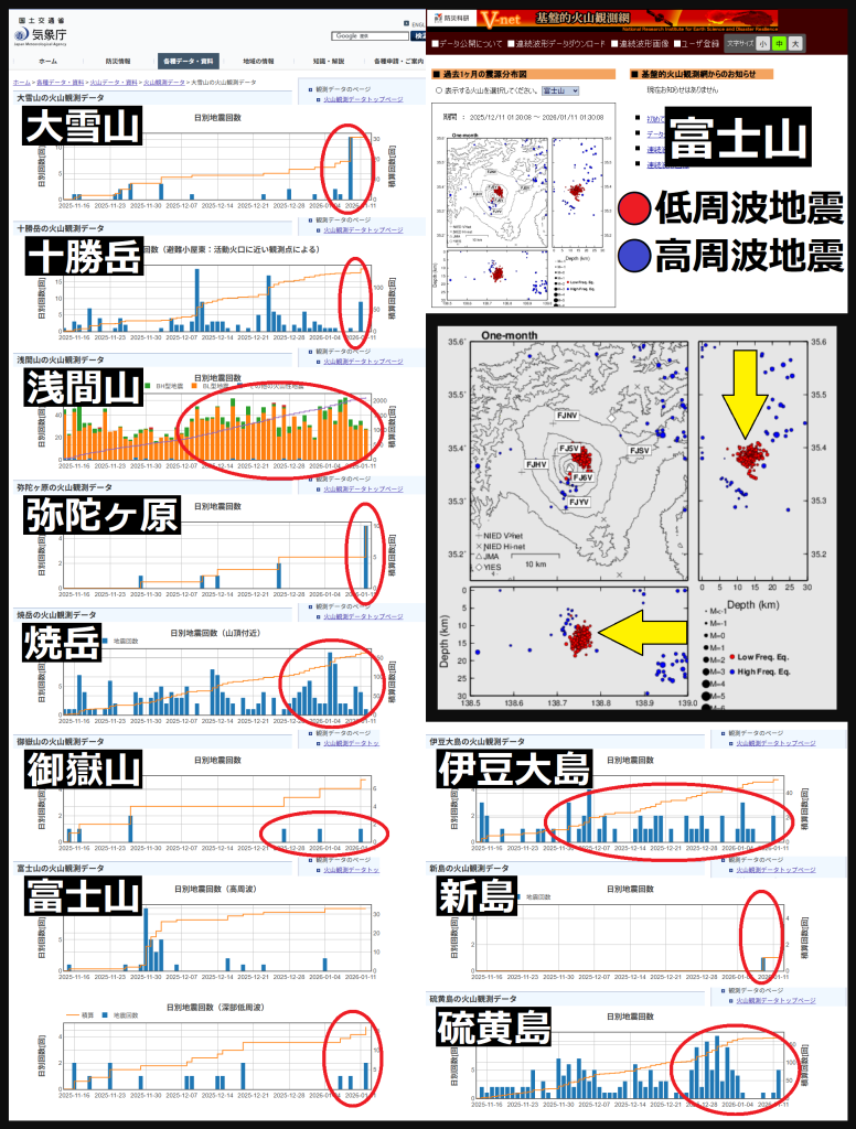 電卓実験日時/■=東,北東,北,北西での観察数/□=西,南西,南,南東での観察数/=合計/【■組/□組】/■組より□組が多いケースには*表示。 25/01/01 09:58〜10:11■0,0,0,0□0,0,0,0=00【00/00】 25/01/02 09:42〜09:56■0,1,0,0□0,0,0,0=01【01/00】 25/01/03 08:12〜08:29■0,0,0,0□0,1,0,0=01【00/01】* 25/01/04 09:23〜09:37■0,2,0,0□0,0,0,0=02【02/00】 25/01/05 07:00〜07:16■1,0,0,1□0,1,0,1=04【02/02】 25/01/06 07:17〜07:32■1,0,0,0□0,1,0,1=03【01/02】* 25/01/07 08:54〜09:10■3,3,0,1□0,0,0,1=08【07/01】[07 10:05チベット西部D10km,M7.1◆(死者126人)] 25/01/08 10:10〜10:24■1,0,0,0□0,0,0,0=01【01/00】 25/01/09 10:49〜11:02■0,0,1,1□1,0,0,0=03【02/01】 25/01/10 08:42〜08:56■0,0,1,0□3,0,0,0=04【01/03】* 25/01/11 06:15〜06:29■1,0,0,0□0,0,0,1=02【01/01】 25/01/12 04:29〜04:43■0,0,0,0□0,0,0,1=01【00/01】* 25/01/13 06:18〜06:36■1,0,1,0□2,0,1,1=06【02/04】*[13 21:19日向灘D36km,M6.6-5弱(震度4は広域)▲] 25/01/14 09:27〜09:40■0,0,0,0□0,0,0,0=00【00/00】 25/01/15 09:24〜09:38■0,0,3,0□0,0,0,0=03【03/00】 25/01/16 10:18〜10:34■0,2,1,0□0,0,1,0=04【03/01】 25/01/17 10:40〜10:53■0,0,0,0□0,0,0,0=00【00/00】 25/01/18 06:47〜07:03■2,3,0,0□0,0,0,2=07【05/02】 25/01/19 05:39〜05:56■0,0,0,1□0,0,2,2=05【01/04】* 25/01/20 09:21〜09:35■0,0,0,2□0,1,0,0=03【02/01】 25/01/21 09:21〜09:34■1,0,0,0□0,0,0,0=01【01/00】[21 01:17台湾南部D8km,M6.1(嘉義県=6弱◆,高雄市,台南市=5弱▲)] 25/01/22 09:47〜10:01■1,1,2,0□0,0,0,1=05【04/01】 25/01/23 09:00〜09:14■0,0,0,0□0,1,0,0=01【00/01】*[23 02:49福島県会津D4km,M5.2-5弱▲] 25/01/24 09:38〜09:54■0,0,0,0□0,1,0,0=01【00/01】* 25/01/25 07:15〜07:30■0,0,0,0□2,0,0,0=02【00/02】* 25/01/26 04:38〜04:59■1,1,0,0□0,0,3,1=06【02/04】* 25/01/27 08:28〜08:43■0,0,0,0□1,0,0,0=01【00/01】* 25/01/28 08:56〜09:10■2,1,0,0□0,0,0,1=04【03/01】 25/01/29 09:23〜09:37■2,0,3,0□0,0,0,0=05【05/00】 25/01/30 08:59〜09:13■1,0,0,0□1,0,0,0=02【01/01】 25/01/31 08:37〜08:51■0,1,1,0□0,0,1,0=03【02/01】 25/02/01 06:34〜06:49■1,1,0,0□1,1,0,0=04【02/02】 25/02/02 06:24〜06:40■0,0,0,0□0,1,0,1=02【00/02】* 25/02/03 07:37〜07:55■1,2,0,0□1,1,0,1=06【03/03】 25/02/04 07:50〜08:08■6,2,1,2□2,1,0,1=15【11/04】 25/02/05 09:19〜09:34■0,1,1,2□1,0,0,0=05【04/01】 25/02/06 09:47〜10:04■0,1,2,1□2,0,0,1=07【04/03】 25/02/07 09:26〜09:43■1,1,2,1□1,0,0,1=07【05/02】 25/02/08 09:21〜09:34■0,0,0,0□0,0,0,1=01【00/01】* 25/02/09 04:22〜04:41■1,1,0,1□1,1,1,1=07【03/04】*[09 08:23中米ホンジュラス北方D20km,M7.6◆] 25/02/10 05:29〜05:43■0,1,0,0□0,0,0,0=01【01/00】 25/02/11 08:03〜08:18■0,1,1,1□0,0,0,1=04【03/01】 25/02/12 10:19〜10:33■1,1,0,0□0,0,0,0=02【02/00】 25/02/13 10:00〜10:16■3,0,0,0□0,0,0,1=04【03/01】 25/02/14 09:03〜09:17■0,0,0,0□0,0,0,1=01【00/01】* 25/02/15 09:27〜09:39■1,0,0,0□0,0,0,0=01【01/00】 25/02/16 06:43〜06:58■1,1,0,0□0,0,0,0=02【02/00】 25/02/17 08:27〜08:41■0,0,0,0□0,1,0,0=01【00/01】* 25/02/18 10:35〜10:47■0,2,0,0□0,0,0,0=02【02/00】 25/02/19 08:50〜09:05■0,1,0,0□0,1,1,1=04【01/03】* 25/02/20 10:02〜10:16■0,0,1,0□0,0,0,1=02【01/01】 25/02/21 12:13〜12:26■0,0,0,0□0,0,0,0=00【00/00】 25/02/22 07:23〜07:38■0,0,0,0□1,0,1,0=02【00/02】* 25/02/23 04:11〜04:28■0,1,1,0□0,0,2,1=05【02/03】* 25/02/24 11:29〜11:43■0,0,0,0□0,0,0,0=00【00/00】 25/02/25 11:16〜11:30■2,0,0,0□0,0,0,0=02【02/00】 25/02/26 09:11〜09:25■1,1,1,0□0,0,0,2=05【03/02】 25/02/27 12:43〜12:57■1,1,0,0□0,0,0,0=02【02/00】 25/02/28 09:33〜09:46■0,0,0,0□1,0,0,0=01【00/01】* 25/03/01 08:05〜08:18■1,0,0,0□1,0,0,0=02【01/01】 25/03/02 04:46〜04:59■0,0,0,0□0,0,0,0=00【00/00】 25/03/03 09:19〜09:33■0,0,0,0□0,0,0,0=00【00/00】 25/03/04 10:32〜10:45■0,1,0,0□0,0,0,0=01【01/00】 25/03/05 11:58〜12:15■1,0,2,2□1,1,0,0=07【05/02】 25/03/06 13:08〜13:22■0,0,0,0□0,0,1,0=01【00/01】* 25/03/07 09:22〜09:35■0,0,1,0□0,0,0,0=01【01/00】 25/03/08 06:40〜06:58■1,1,2,0□1,0,2,1=08【04/04】 25/03/09 03:03〜03:22■1,2,0,0□0,1,2,0=06【03/03】 25/03/10 06:58〜07:19■2,1,0,0□3,2,1,1=10【03/07】* 25/03/11 12:16〜12:31■0,0,1,1□1,0,0,0=03【02/01】 25/03/12 12:23〜12:37■0,2,0,0□0,0,0,0=02【02/00】 25/03/13 10:46〜11:00■0,0,0,0□0,0,0,0=00【00/00】 25/03/14 08:25〜08:40■3,0,0,0□0,1,0,0=04【03/01】 25/03/15 06:55〜07:08■0,0,0,0□0,0,0,0=00【00/00】 25/03/16 03:36〜03:49■0,0,0,0□0,0,0,0=00【00/00】 25/03/17 08:40〜08:54■0,0,0,0□0,0,0,0=00【00/00】 25/03/18 13:03〜13:16■0,1,0,1□1,0,0,0=03【02/01】 25/03/19 10:55〜11:09■0,0,0,0□0,0,0,1=01【00/01】* 25/03/20 11:33〜11:47■0,0,0,0□1,1,0,0=02【00/02】* 25/03/21 09:04〜09:19■2,1,1,1□0,0,0,0=05【05/00】 25/03/22 06:22〜06:35■0,0,0,1□0,0,1,0=02【01/01】 25/03/23 04:03〜04:16■0,0,0,0□0,0,0,0=00【00/00】 25/03/24 08:49〜09:03■1,0,1,0□1,0,0,1=04【02/02】 25/03/25 09:32〜09:44■0,0,0,1□0,0,0,0=01【01/00】 25/03/26 10:43〜10:57■1,1,1,0□0,0,0,0=03【03/00】 25/03/27 10:03〜10:17■0,2,1,1□0,1,0,0=05【04/01】 25/03/28 11:54〜12:07■1,0,2,2□0,0,0,0=05【05/00】[08 15:20ミャンマー中部D10km,M7.7◆(死者3600人超,行方不明=数百人)] 25/03/29 08:01〜08:15■1,0,1,1□0,0,1,0=04【03/01】 25/03/30 04:41〜04:55■1,0,0,0□0,0,0,0=01【01/00】[30 21:18トンガD29km,M7.0◆] 25/03/31 11:55〜12:09■0,0,1,0□1,0,0,0=02【01/01】 25/04/01 09:58〜10:12■0,1,0,0□0,0,0,0=01【01/00】 25/04/02 05:05〜05:20■2,1,0,0□0,0,0,1=04【03/01】[02 23:03大隅半島東方沖D36km,M6.1-4▲] 25/04/03 02:56〜03:14■1,0,1,0□0,1,0,2=05【02/03】*[03 23:09北大西洋(レイキャネス海嶺)