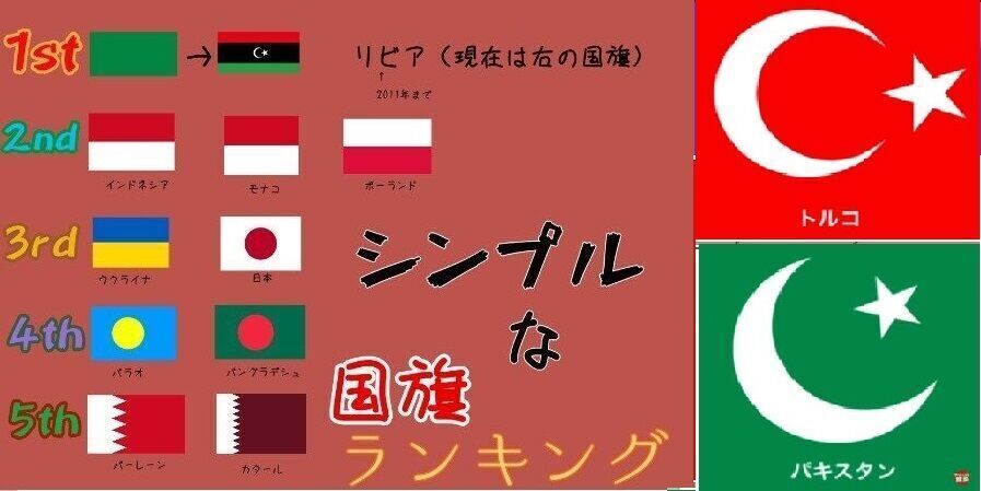■ヤバい国ランキングのバロメーターにして来たバングラディシュは、色違いの日本と同じ日の丸です。 2011年のリビア内戦以降は複雑な国旗に変わりました(東日本大震災の年) https://burasutdiary.hatenablog.com/entry/2019/08/08/184814 シンプルなのがワーストな国旗ですが、このランキングではウクライナと日本が並んでいて、2005年死者10万人のパキスタン地震や2023年死者5万人のトルコ地震も色違いの国旗ですが、建国(の)記念日が同じ日本とイランは、国旗と並んだ日本とウクライナと類似する危機となりそうです。