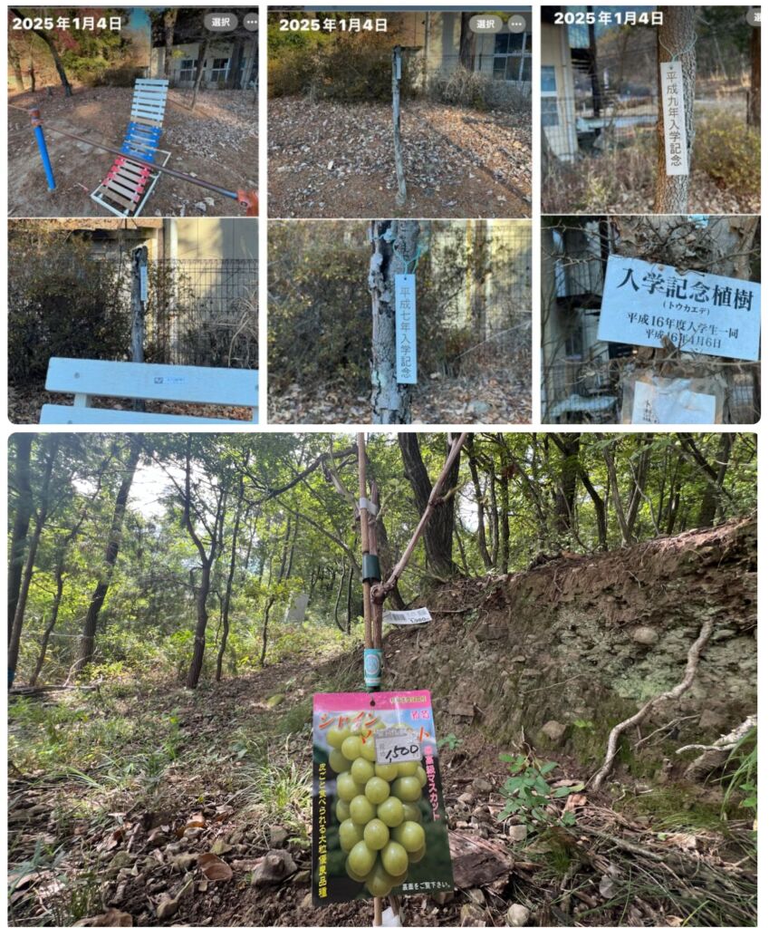 10月4日に104代総理が誕生した事を誰も話題にしませんが、今年1月4日は山梨県道104号線の調査に向かいました。 ユラユラ遊具がありそうな甲府市立千代田小学校の校庭に入ったら、初めて見る反り立つ壁のような逆上がり補助機を発見しました。 https://www.gaccom.jp/schools-16035.html ■その先に見えたのが平成7年記念植樹の木があり、30年前の阪神大震災の年から全く成長していなかった。 その隣には平成8・9・10〜16年までありましたが、7年だけが枯れていました。 まさに令和7年も第二次阪神大震災のような、悲惨な年になりそうな記念植樹の木のお告げでしたが、私も令和7年7月に自宅にシャインマスカットの苗木を植えましたが、枯れてしまったたのです。 今日は再び104号線の調査に向かいます。