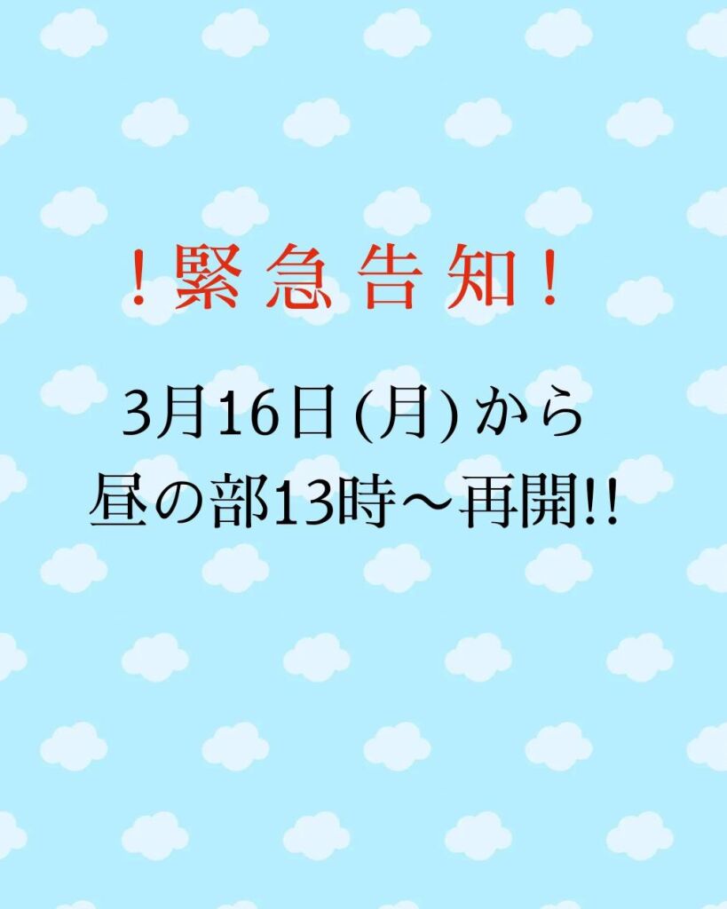13:00〜営業となります