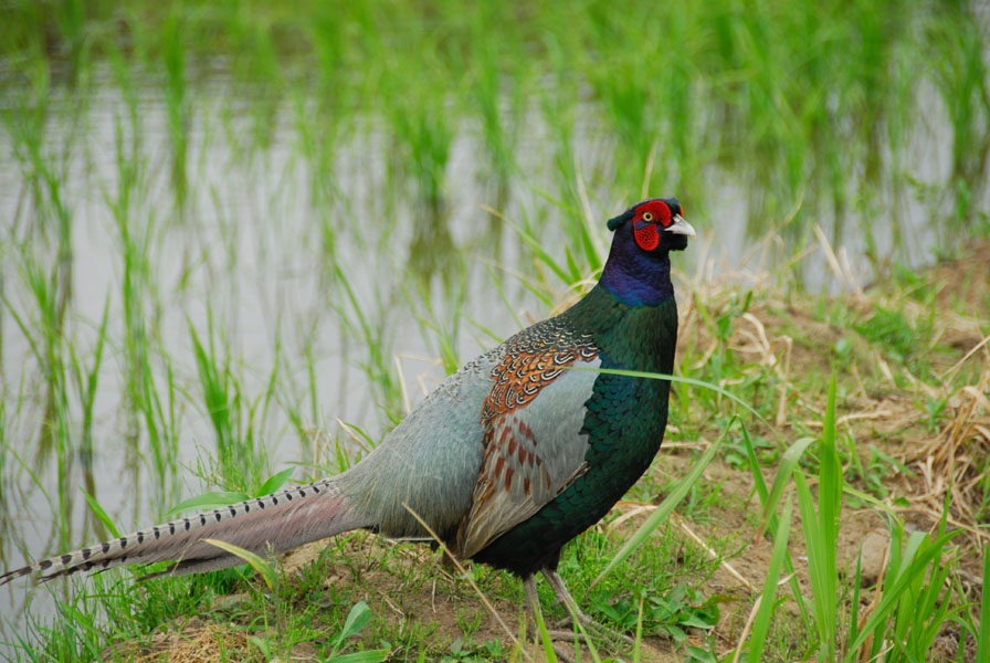 近くの田圃でキジが私を睨んでいました、と言うかポーズをとっているかのようで? 数枚を撮ってあげました。