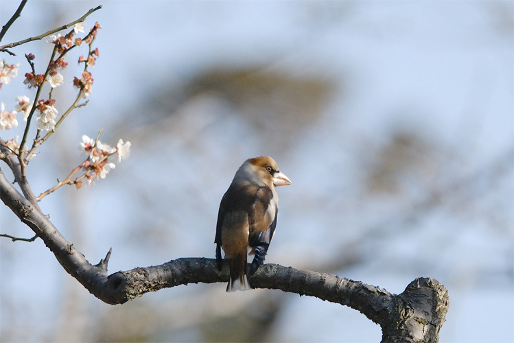 このシメは 体型のわりにはくちばしが太く 獰猛な感じがしますね。