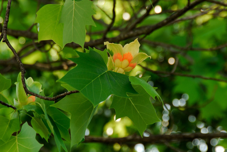 公園で上を見上げたらユリノキの花が綺麗でした♪