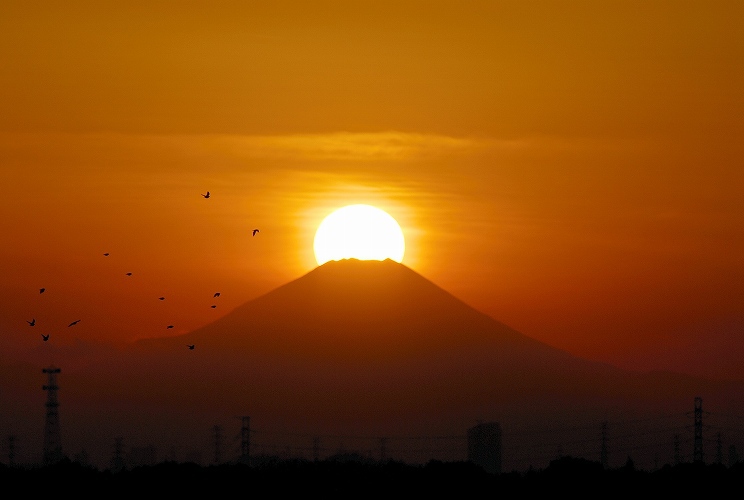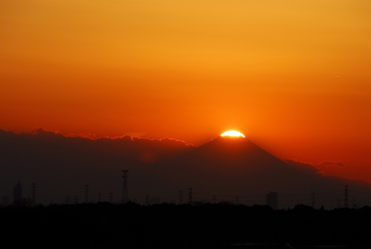 今日、夕方4時40分恒例の我が家のリビングからダイヤモンド富士が観られました。