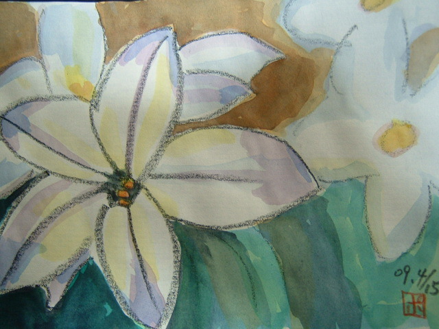 客観的な目で見ると構図・デッサンが出来ていないと何かおかしいということになるけれど、自分で納得し気に入ってしまえばそのまま展示してしまう私です(ワハハハハハハ!)。