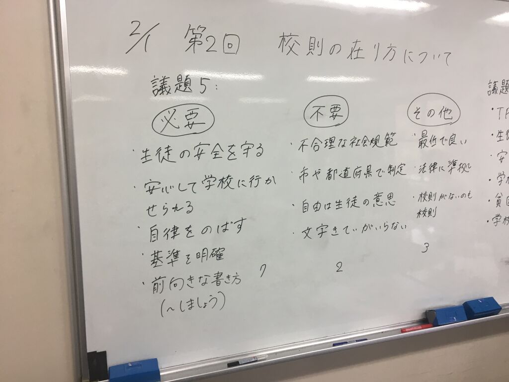 終盤には、生徒指導提要など国が定めたガイドラインを守るという意識だけでは教員の不祥事の減少は難しいため、県や学校単位で明確なルールを設けるべきではないかという意見も出ました。