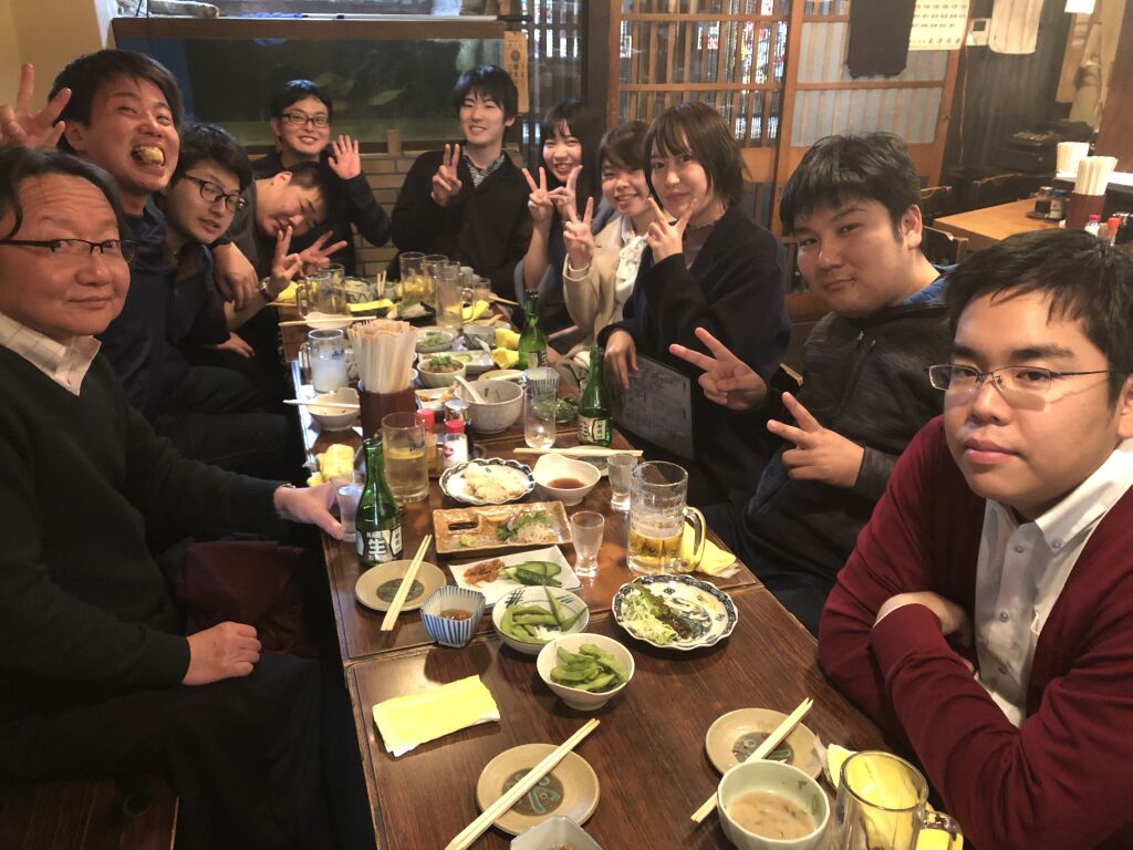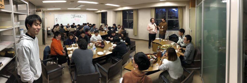 2020年第1回(令和元年度第10回)ディスカッションには多くの3回生が、新年会にはよく見る顔ぶれの先輩方が来てくださいました! 先輩方には新学期が始まってお忙しいなか来てくださったこともあり感無量です! 新年会で16期の方々がこれからの進路や活動に不安を感じているのを見て、懐かしく感じるとともに僕自身も次のことを真剣に考えていかなければならないと省みていました。新しく年が変わることでいろいろなことが変わるなか、自分も変わっていきたいと思いました! あと、お酒飲めてないので次こそは飲みます。必ずや飲みます。