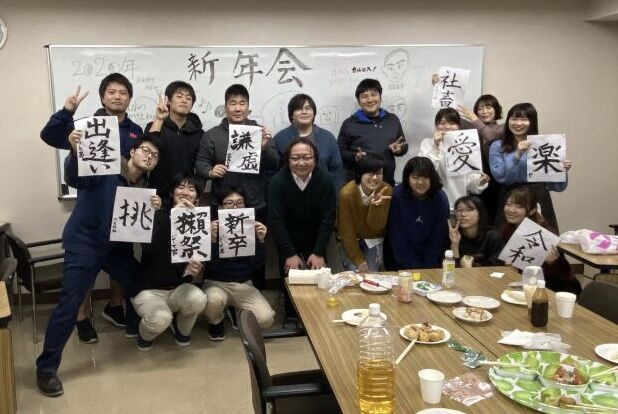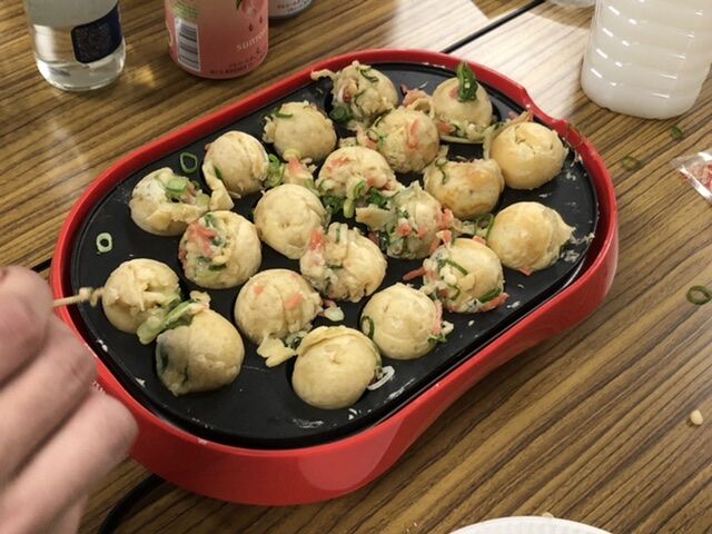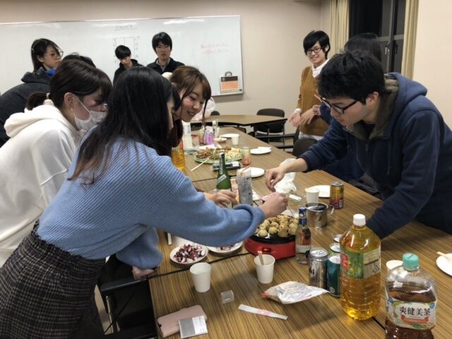 ディスカッションが終わったあと、新年会をしました。たこ焼きを焼くのは難しくて、苦戦しました。お酒もいただき、楽しい時間を過ごすことができました。二次会も楽しかったです。ありがとうございました。