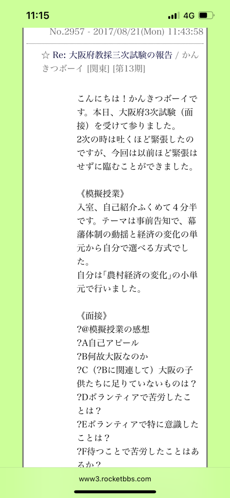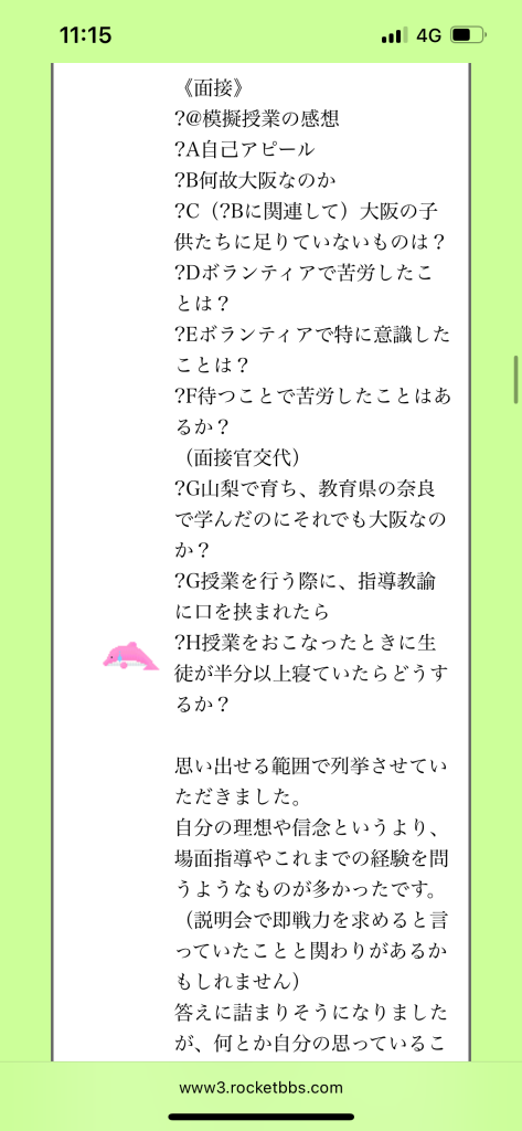 ⚪︎すでに受験済みの講師の方曰く、やはり「模擬授業は10点中何点でしたか?」と言う質問があったそうです。6点ー良かった点ー改善点という形で答えたらいいと思います。