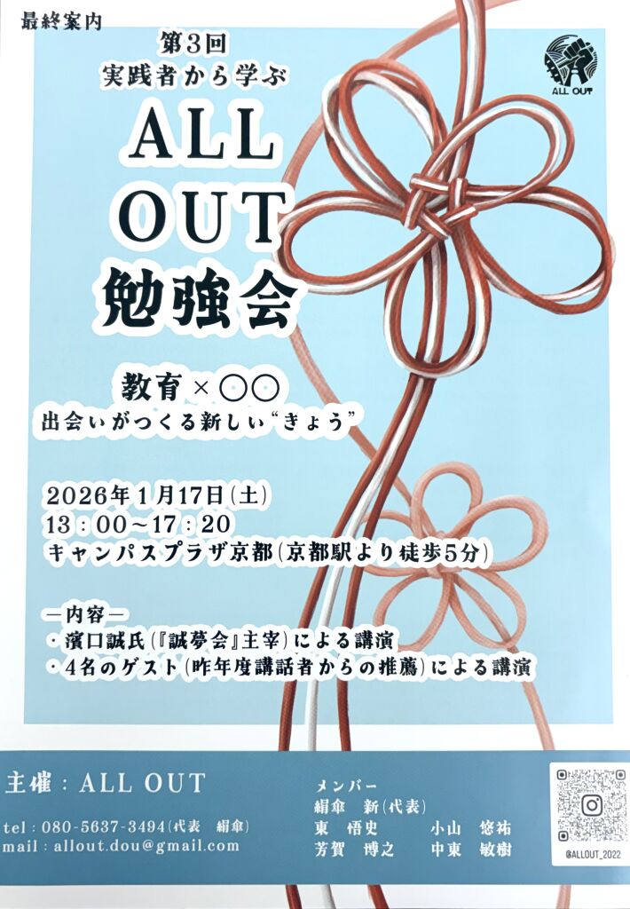 添付ファイルにもあります、ALL OUT勉強会のチラシが完成!〇